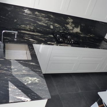 Granitos de importación: los traemos del extranjero y tienen una magnífica calidad. Ofrecen muy buenos resultados. Es granito natural. Dan un aspecto de sofisticación a la cocina. Trabajamos con las marcas Naturamia, Sensa, Consentino, así como otro tipo de granitos brasileños.